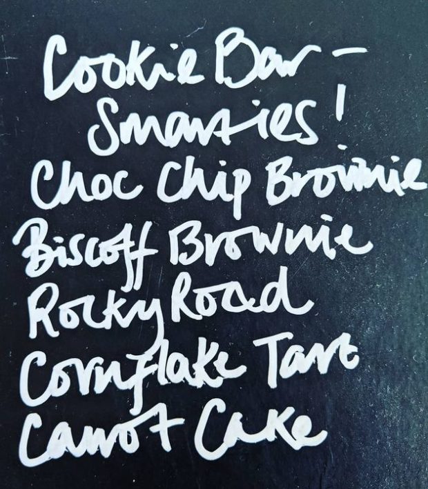 This week's bakes! Should say MINT choc chip brownie!😍 Place your orders via our picknpack service on our website or come and see us for take away coffees and cakes until 3pm today or 10-3pm tomorrow! #brownies #fridayfeeling #starbaker #farmshop